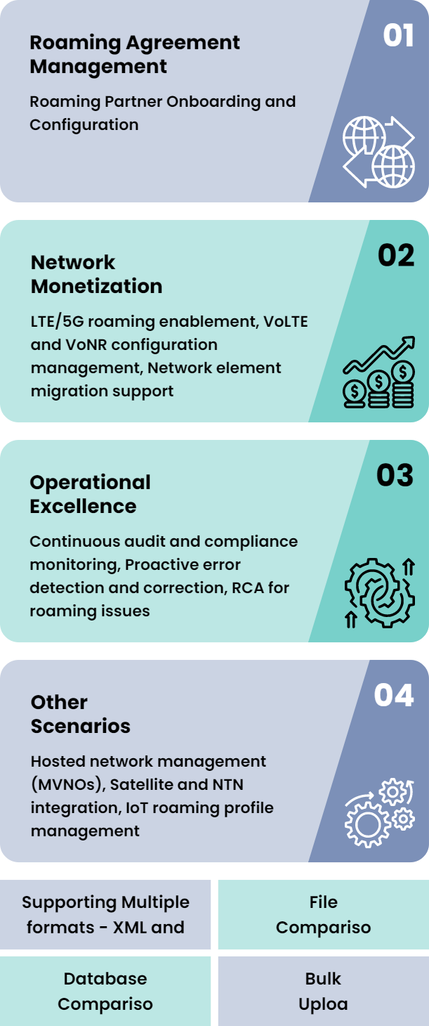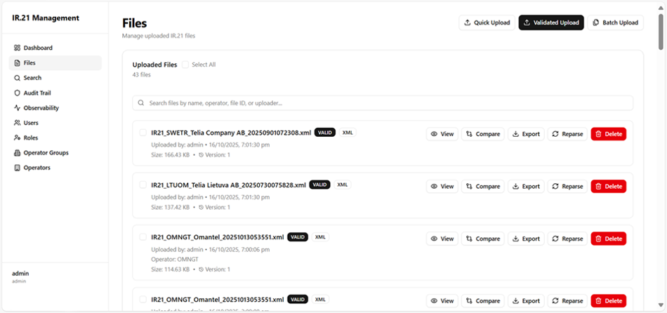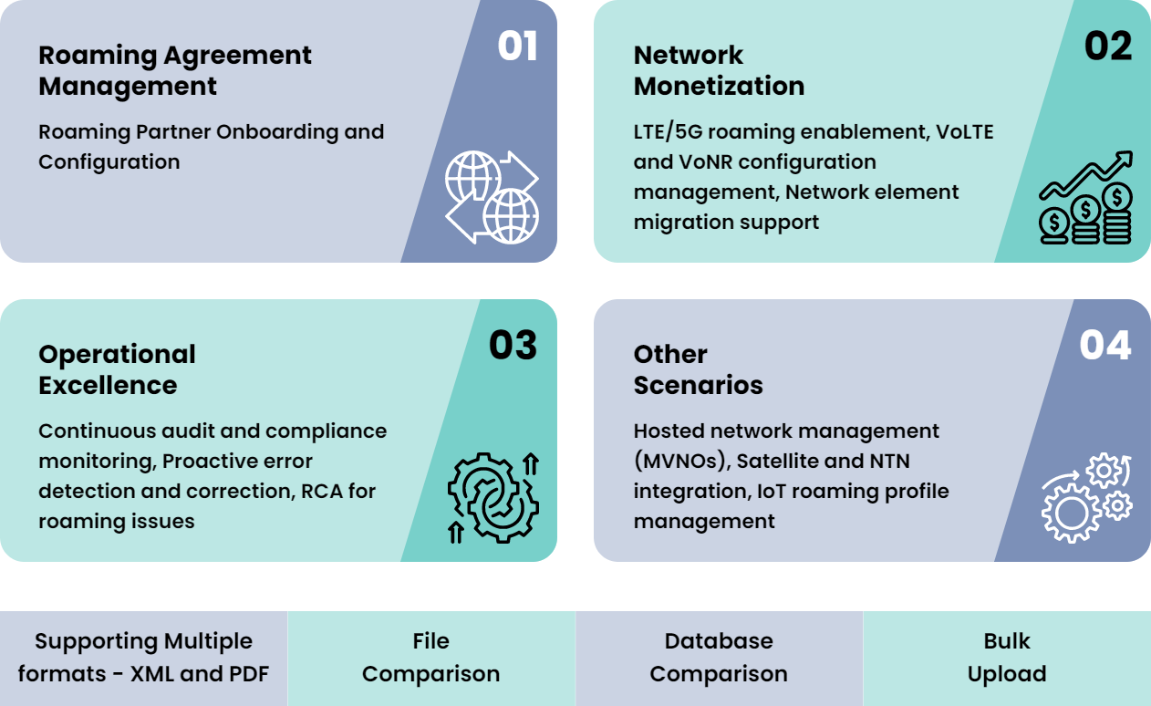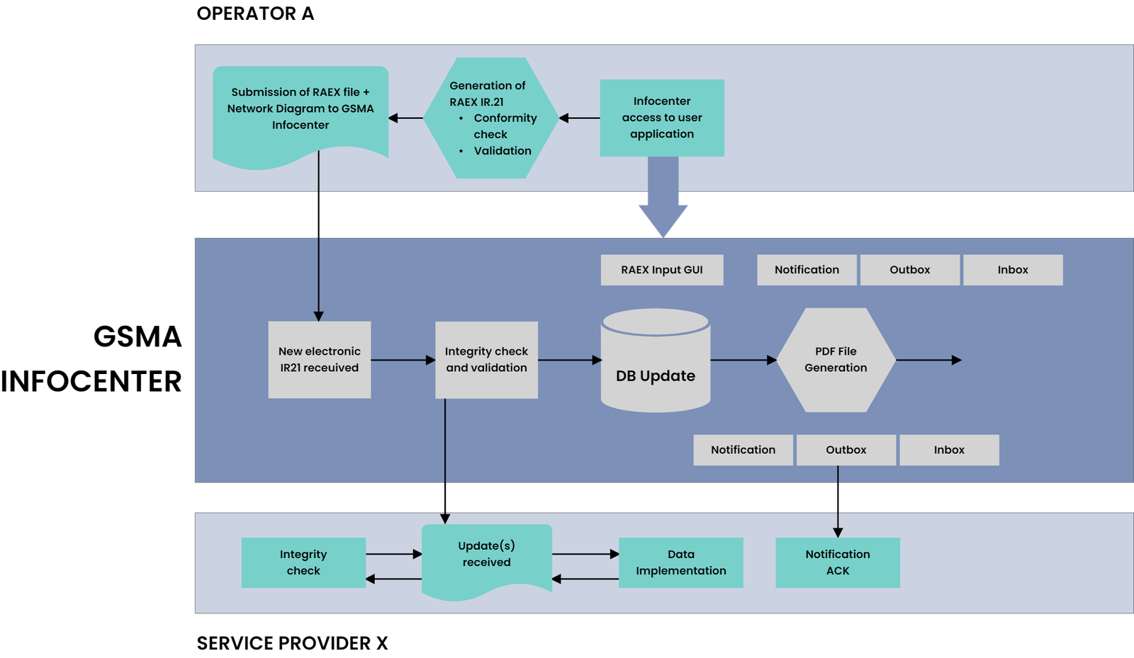 Spartified IR.21 Roaming Database Management System serves as an intermediary layer between GSMA RAEX IR.21 data inflow from partner MNOs and Internal Network and VAS elements, providing automated data processing, validation, storage and export for configuration management
